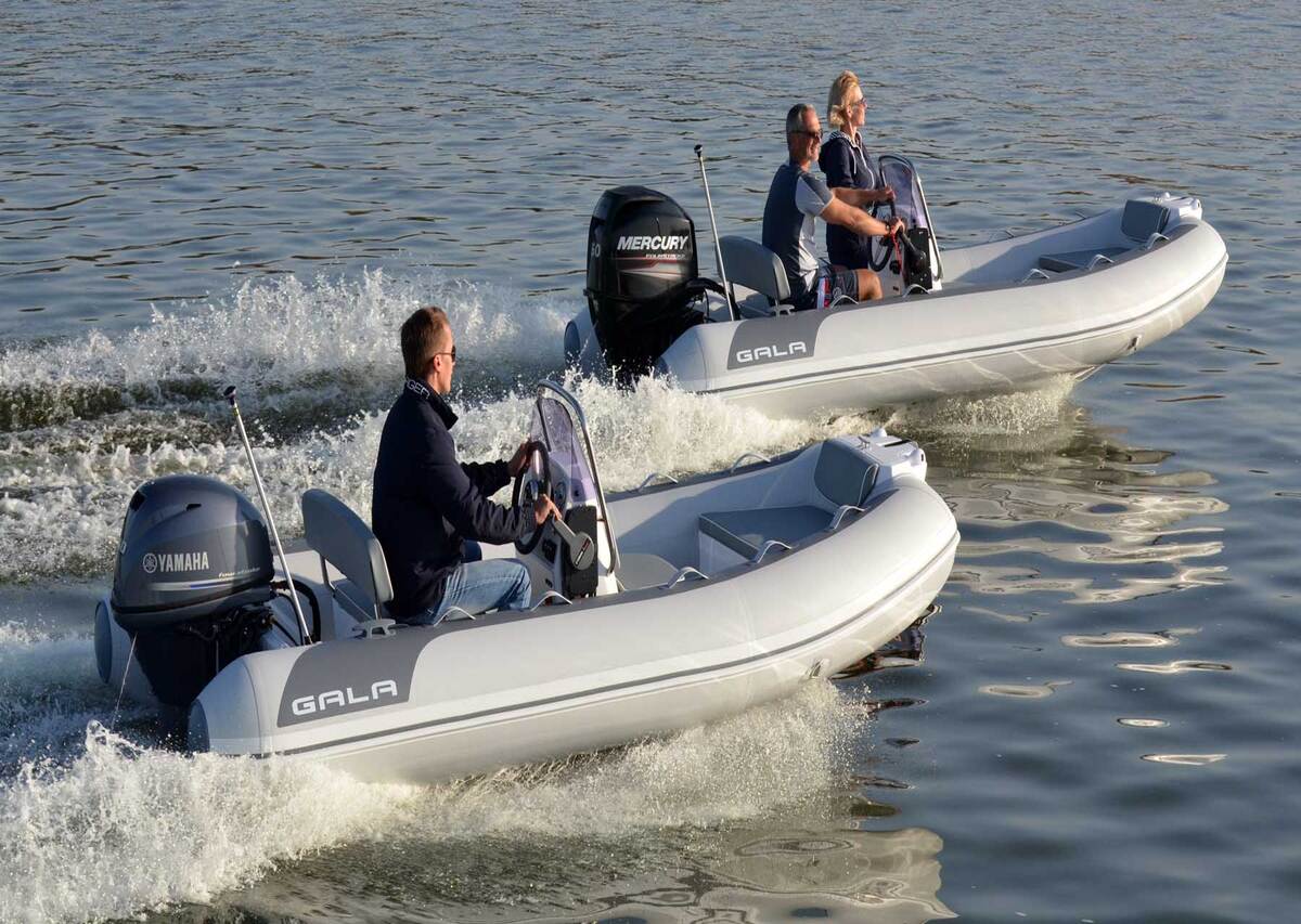 • Medium-V, powder-coated aluminium hull with «GALA TABS», hidden reinforced transom brackets and keel protector